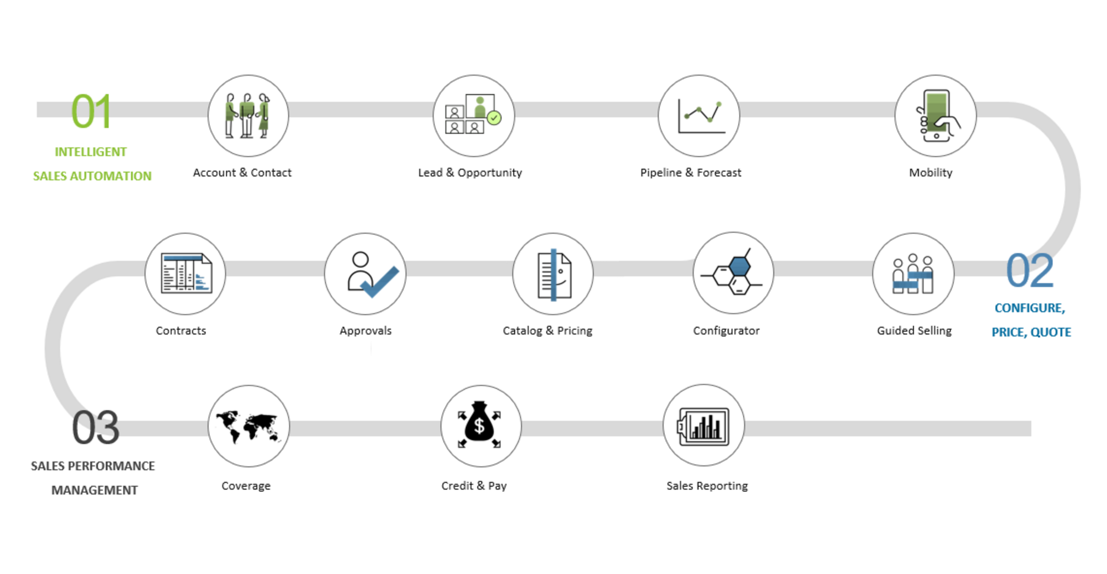 Ermitteln Sie auch bei komplexen Produkt-konfigurationen immer das richtige Produkt, mit dem richtigen Preis (aus dem Backend oder der Sales Cloud selbst) zur richtigen Zeit.